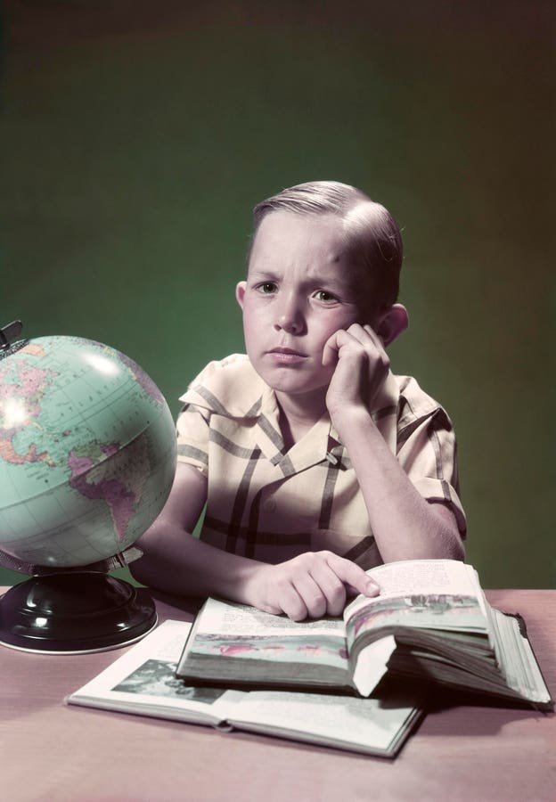 New boy sitting in the office with bullet and manuals, 1950. (Photo by Camerique/Getty Images)