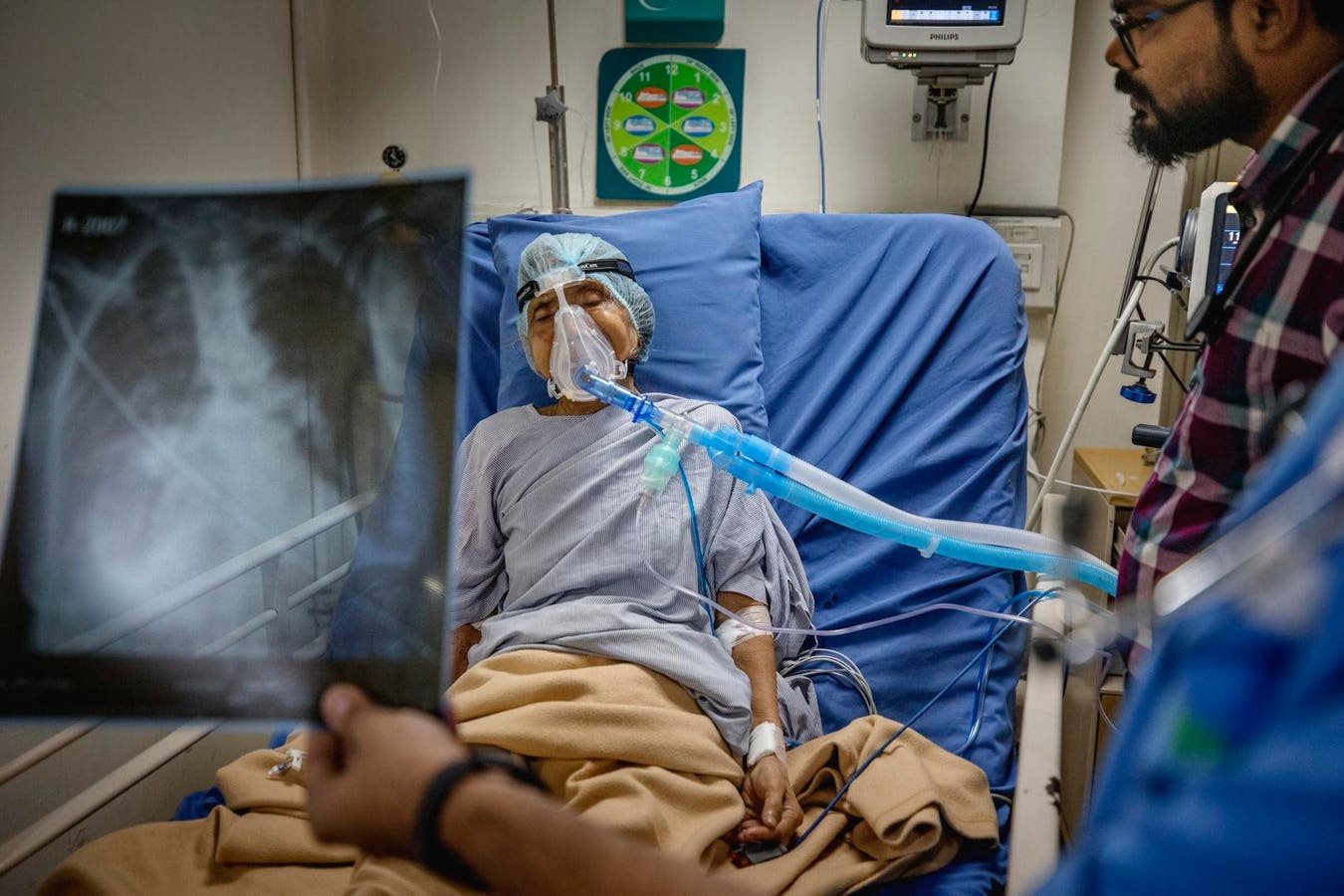 Calcutta, Western Bengal, India – in Fortis Hospital, Calcutta, an elderly woman has been urgently hospitalized due to lung infection. When air is more infected, the number of patients with respiratory diseases and symptoms increases. According to the World Economic Forum, in 2020, India hosts six of 10 of the world’s most polluted cities. The majority of India’s energy production comes from fossil fuels. (Photo by Jonas Gratzer/Lightrocket via Getty Images)