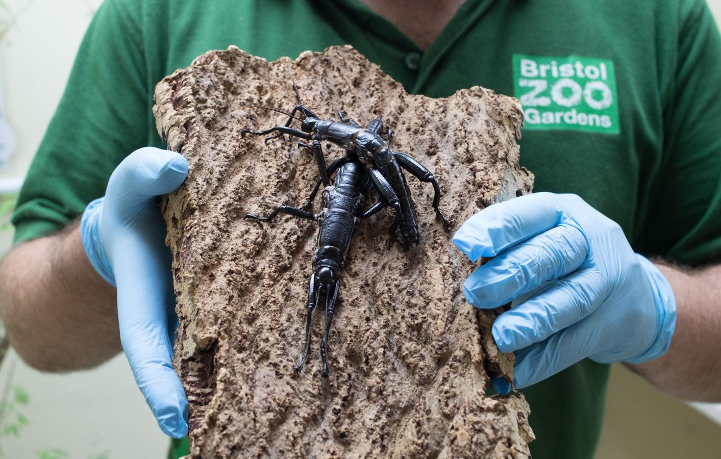 Mark Bushell, curator of invertebrates at Bristol Zoo, holds a pair of critically endangered Lord Howe’s stick insects, one of the rarest insects in the world, which have been bred in captivity at Bristol Zoo Gardens on September 2, 2016 in Bristol, England. The breeding pair, along with two others hatched from eggs sent from Melbourne Zoo, recently laid eggs at Bristol Zoo, marking the first time the species has done so outside of Australia. These six Lord Howe Island stick insects are hoped to become founding members of Europe’s first captive breeding program in an international effort to prevent the species from becoming extinct.
