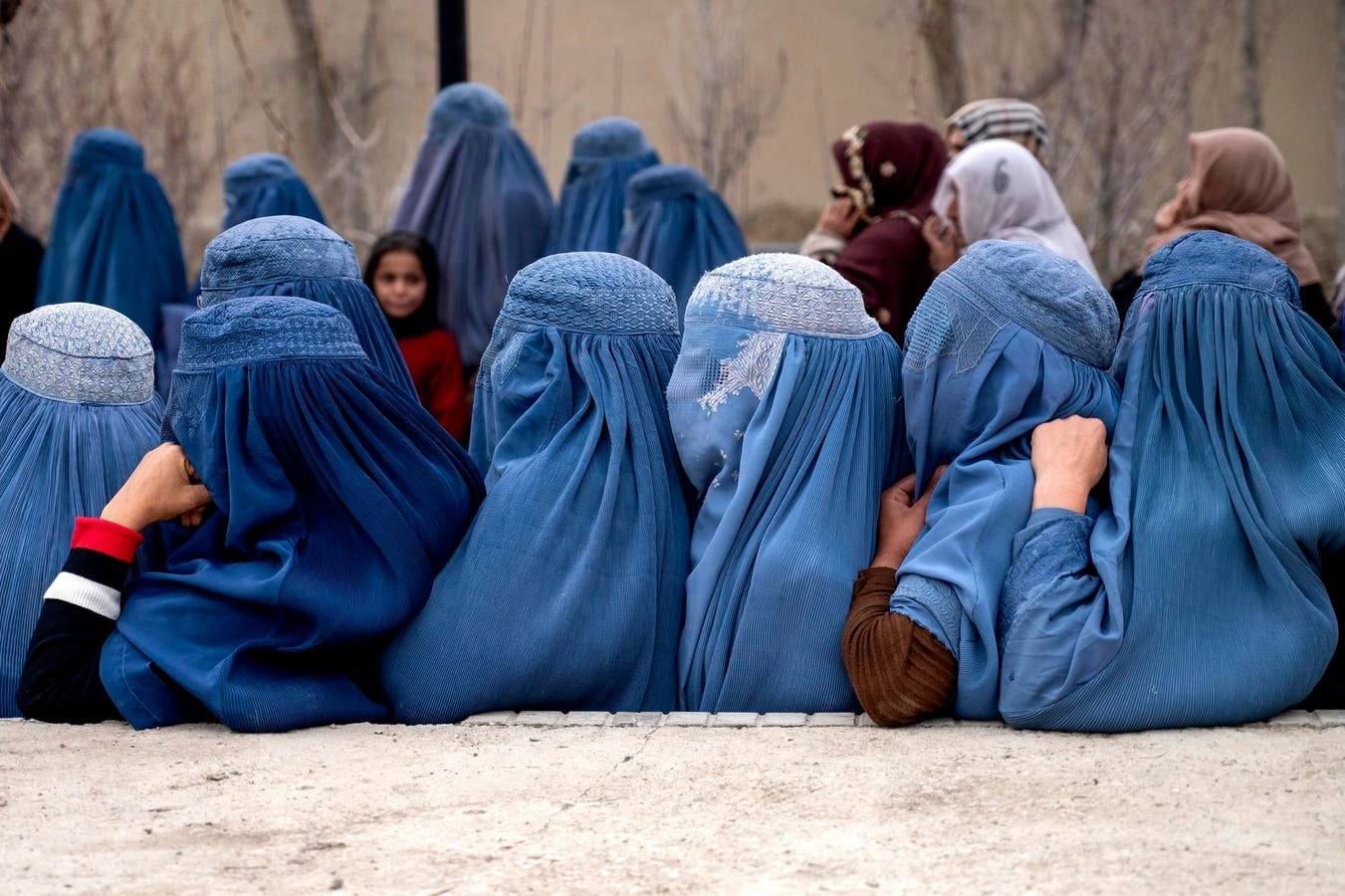 Women who have arrived in Afghanistan are waiting in a queue to receive free Iftar meal during the Islamic St. Renaissance of Ramadan on the outskirts of Kabul on March 12, 2025.